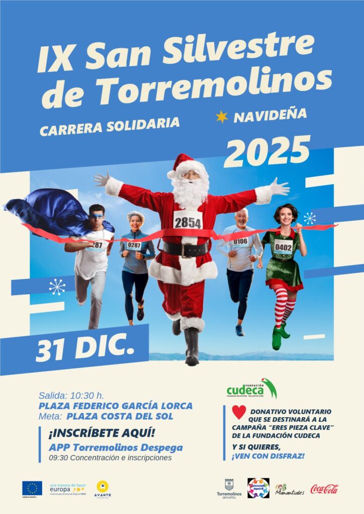 Torremolinos, 11 de diciembre 2025.– Torremolinos finalizará el año con deporte, diversión y solidaridad con la celebración de la IX San Silvestre, una cita festiva y participativa que se llevará a cabo el próximo 31 de diciembre por las calles de la ciudad y que hoy ha presentado el concejal de Deportes, Ramón Alcaide, en compañía de la concejala de Bienestar Social, Gloria Manoja, y María Romera, técnica de comunicación y captación de fondos de la Fundación Cudeca.